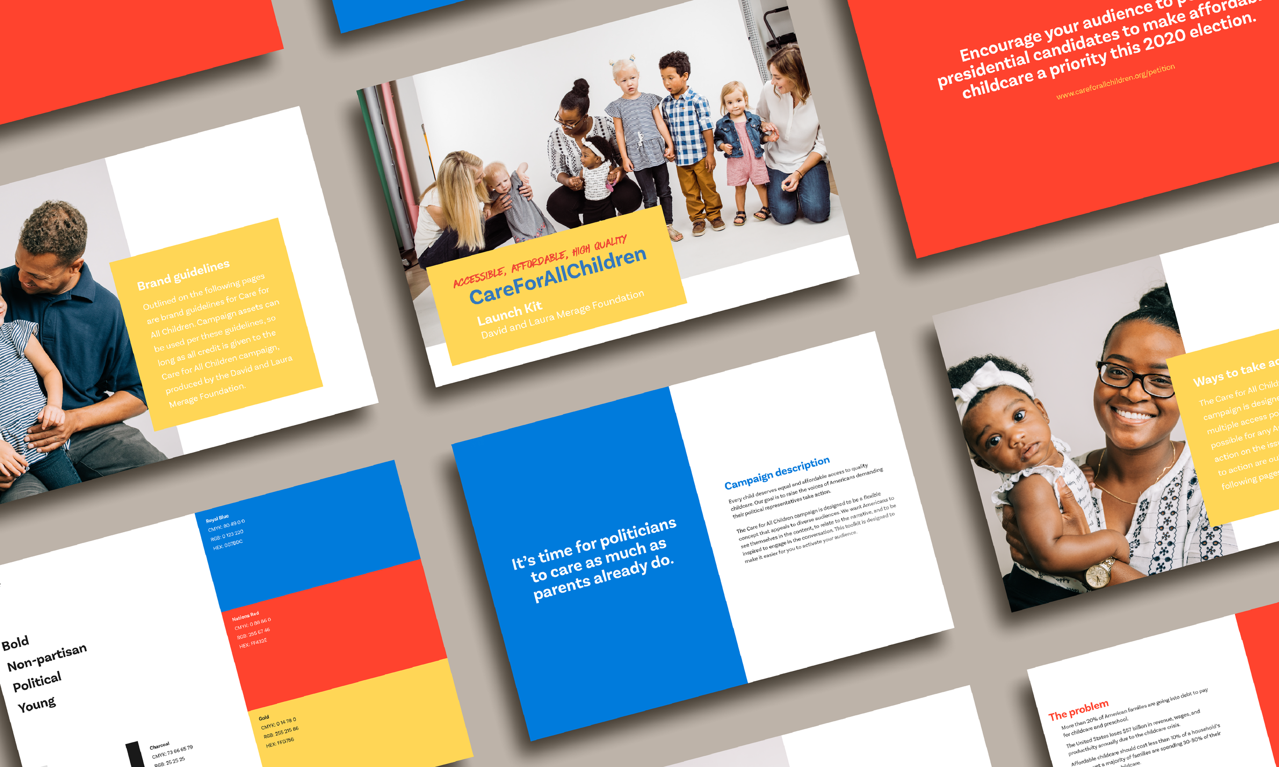 We were approached by the David and Laura Merage Foundation to direct and produce all creative for their campaign to make quality childcare affordable and accessible on a national scale. Deeply respected philanthropists and activists, they intended to leverage their network to make sure the issue made it to the platforms of each presidential candidate. Our job was to design the campaign’s visual identity, messaging, and creative assets that would garner the attention necessary to achieve this goal.